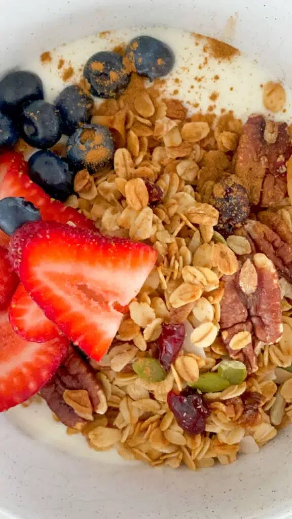 The smell of homemade granola toasting in the oven is heavenly! Many of the packaged versions are loaded with sugar and can have other undesirable additives too. So you’ll be pleased to know that making granola at home is actually super simple! I love knowing exactly what ingredients are in my granola, and the best