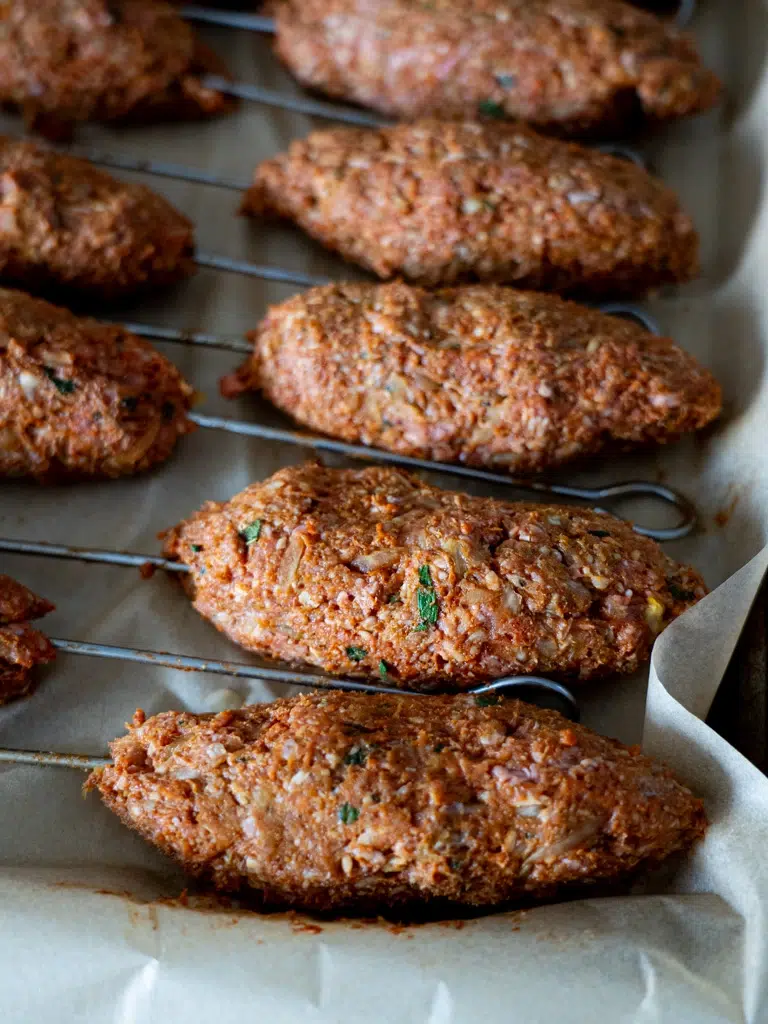 - Soak the skewers – For the kofta, soak the skewers in water for a minimum of 5 minutes.